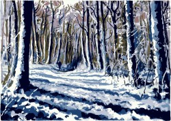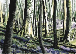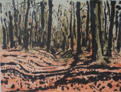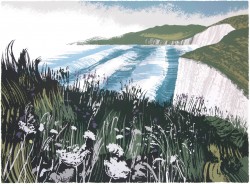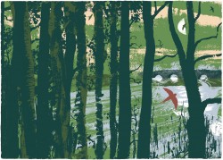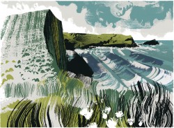 “My subject matter is often landscape, particularly where the land meets the sea, beaches, cliffs, and wetlands. I enjoy the emotional charge and excitement of painting in the open and it is this feeling that I want to get down on paper as it invests the image with its character and energy. I find that the marks that I make on location, in response to what is in front of me, are impossible to reproduce in a studio environment. Once back in my studio I develop and evolve a silkscreen print or monotypes from the paintings that I have produced. The silkscreen process lends a natural simplification to an image imbuing it with a paired back graphic quality whilst the nuances of marks and depth of blacks that the monotype process offers are particularly effective at evoking the drama of light in the landscape” Andy Lovell